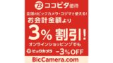 | ビックカメラ・コジマ | お会計から3%OFF | 🔻3%OFF |